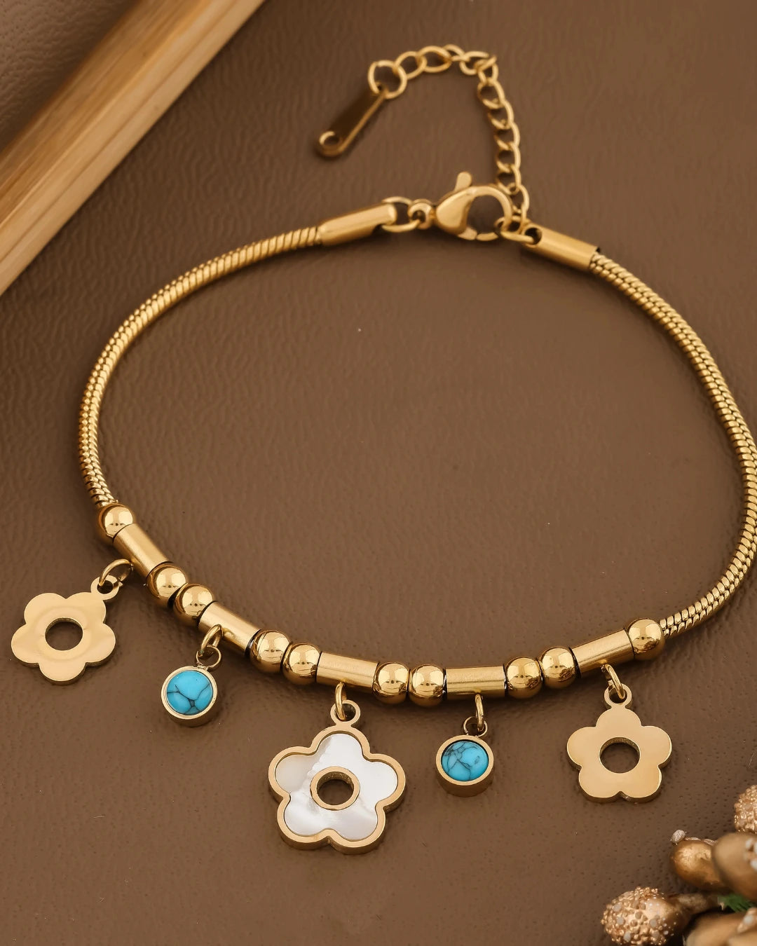 Golden Floral Charm Bracelet