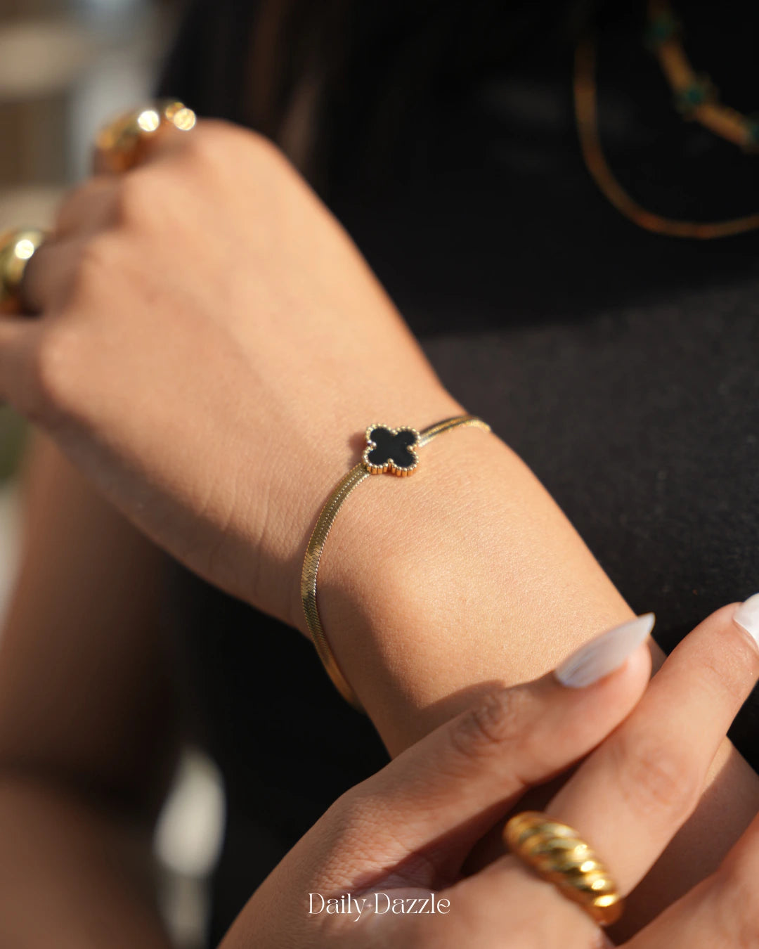A symbol of luck and timeless beauty, the Black Clover Gold Bracelet is designed to bring a touch of sophistication and charm to your wrist.