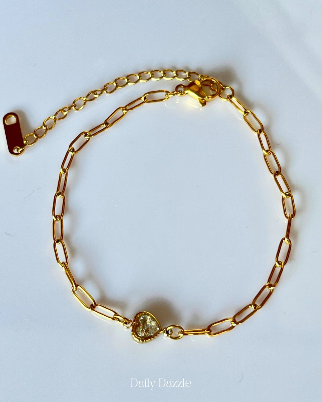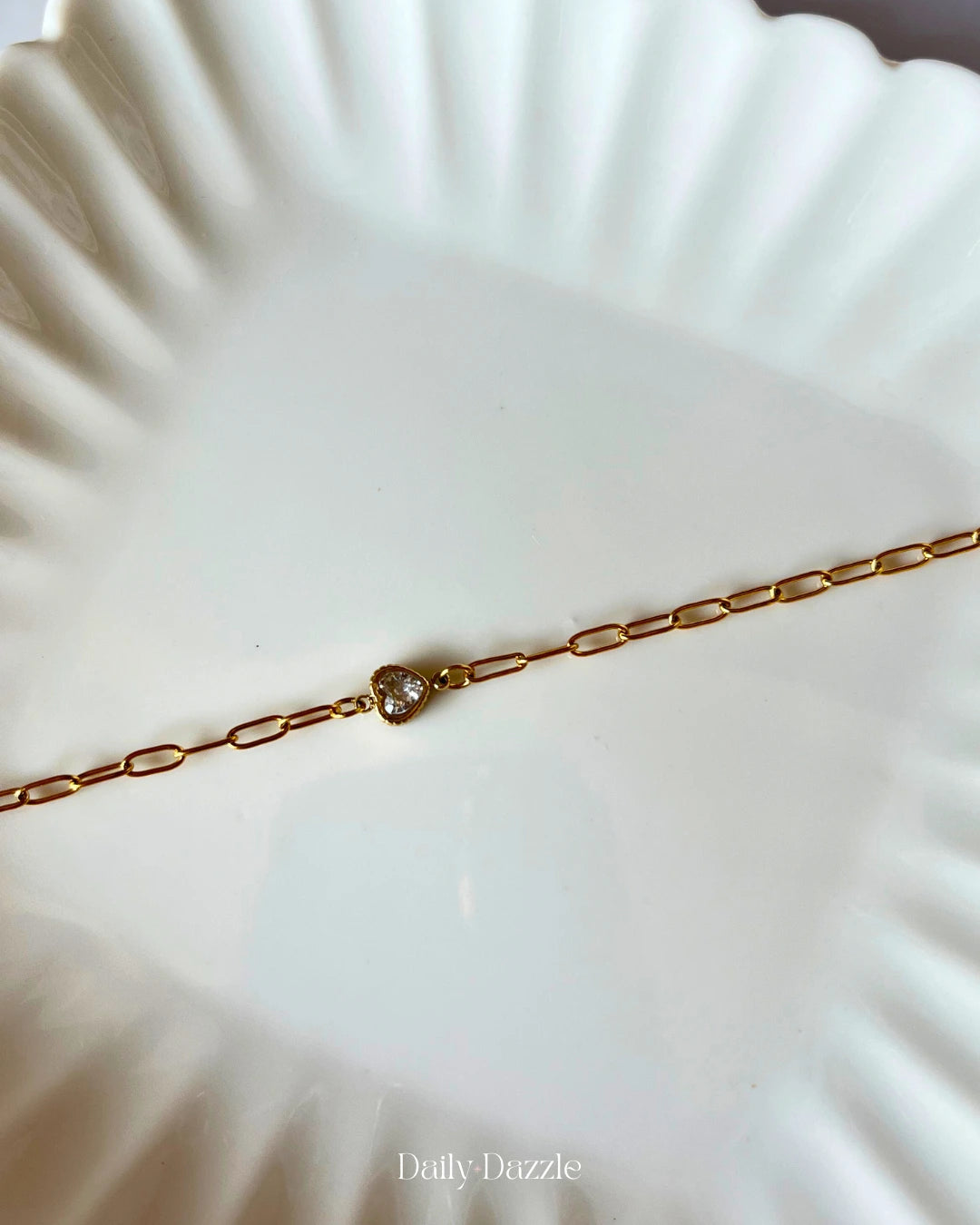 The Honey Heart Link Bracelet blends modern charm with soft romance. Featuring a sleek paperclip chain and a single heart-shaped crystal at its center, this bracelet strikes the perfect balance between edgy and elegant.