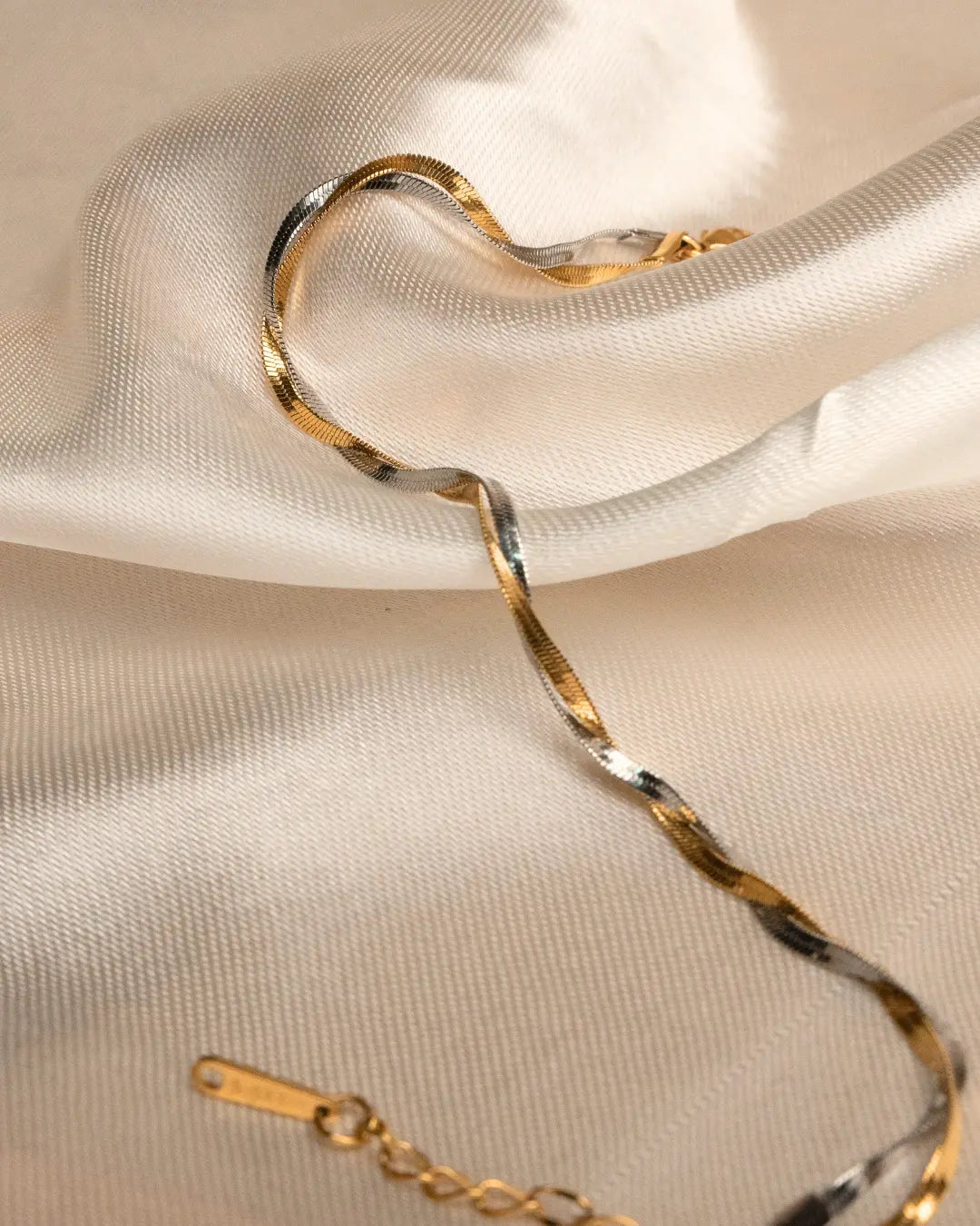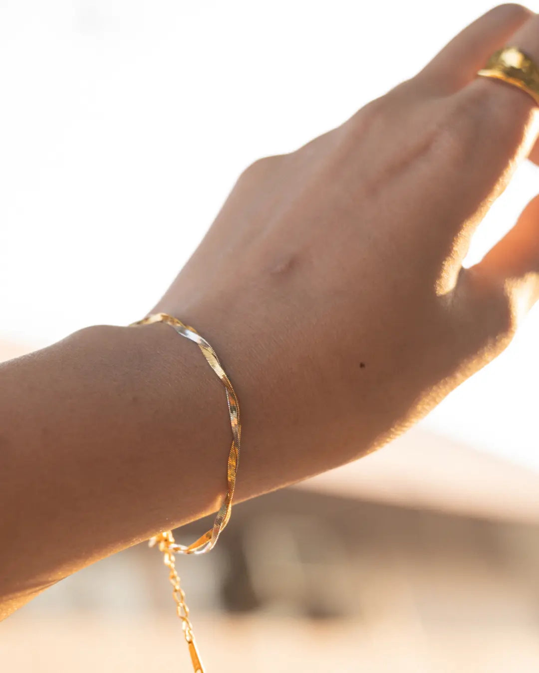 Our elegant Dual-Tone Bracelet effortlessly blends the warmth of gold with the sleek sophistication of silver, giving you the best of both worlds.