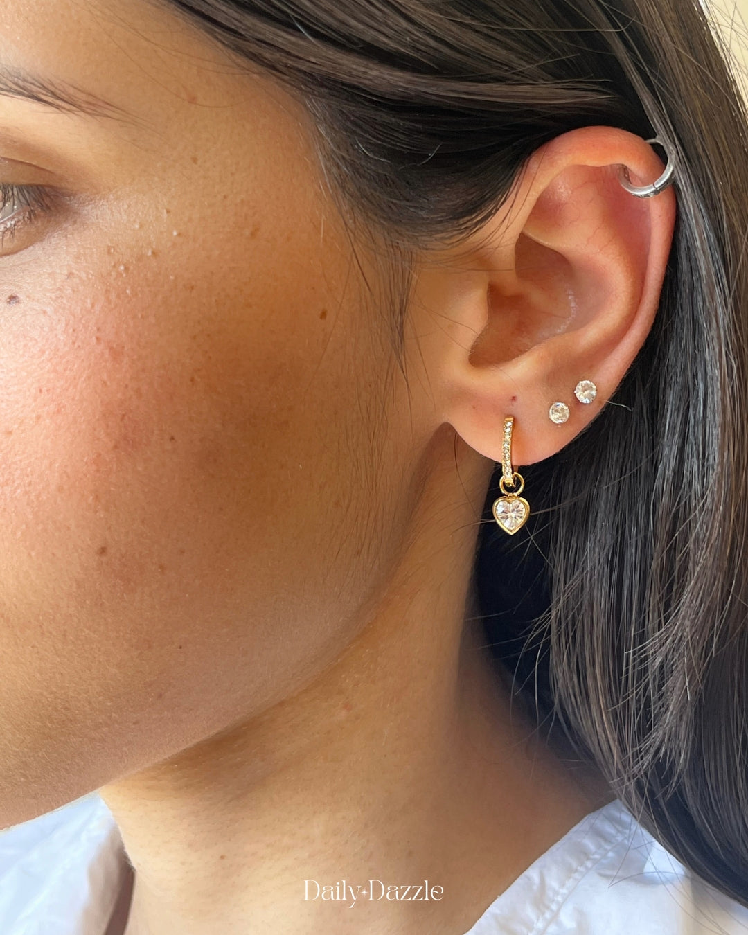 These elegant earrings can be worn in two chic ways: as minimalistic, sleek hoops for a subtle everyday look or with a dazzling heart charm for a touch of elegance and sparkle. Whether you’re going for a casual day out or dressing up for a special occasion, these earrings adapt effortlessly to your style. Lightweight, comfortable, and tarnish-resistant, they are perfect for stacking or wearing solo.