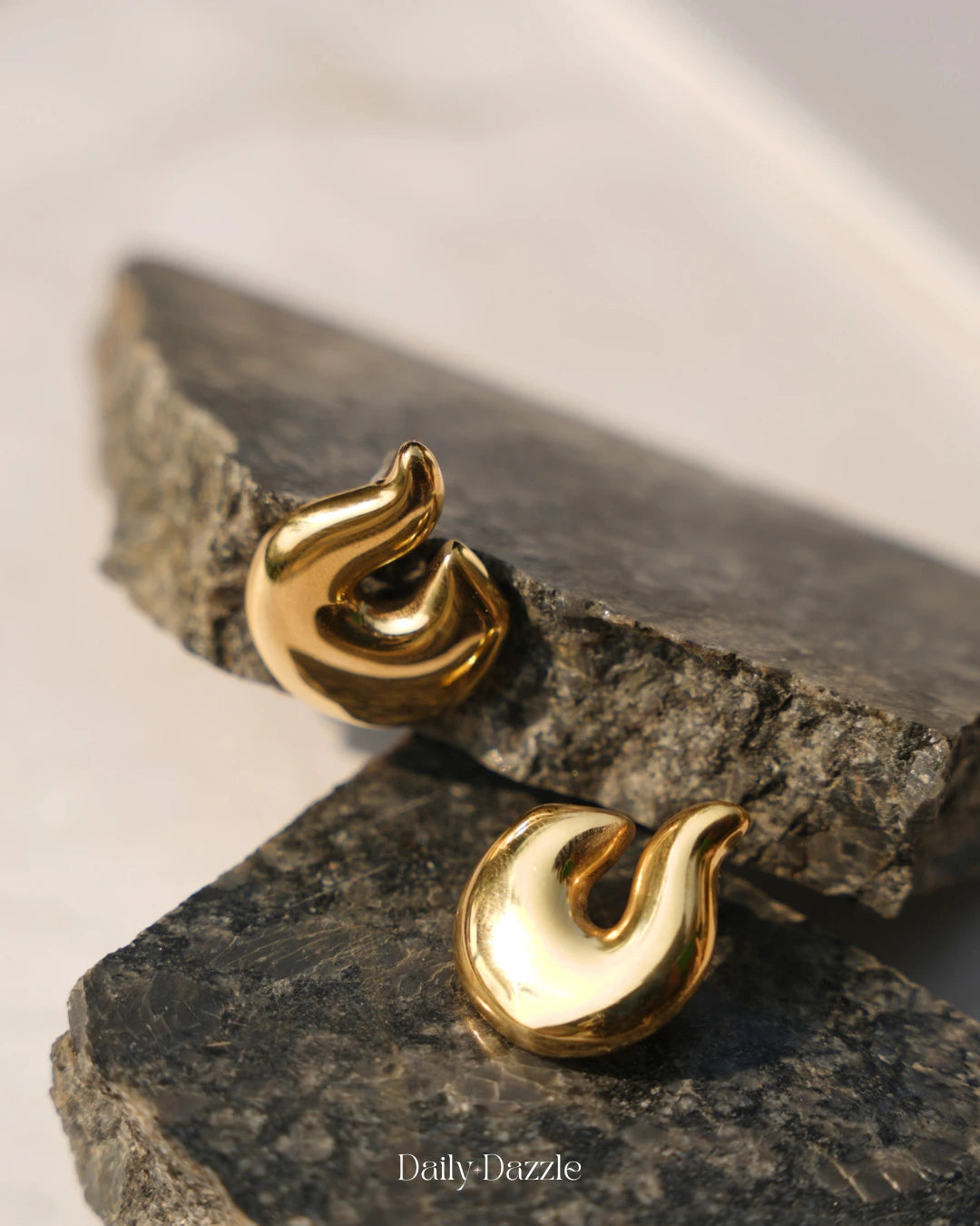 A bold statement in fluid design, these 18K gold-plated, anti-tarnish earrings bring the essence of molten metal to life. Their organic curves reflect light beautifully, making them the perfect modern accent for any outfit.