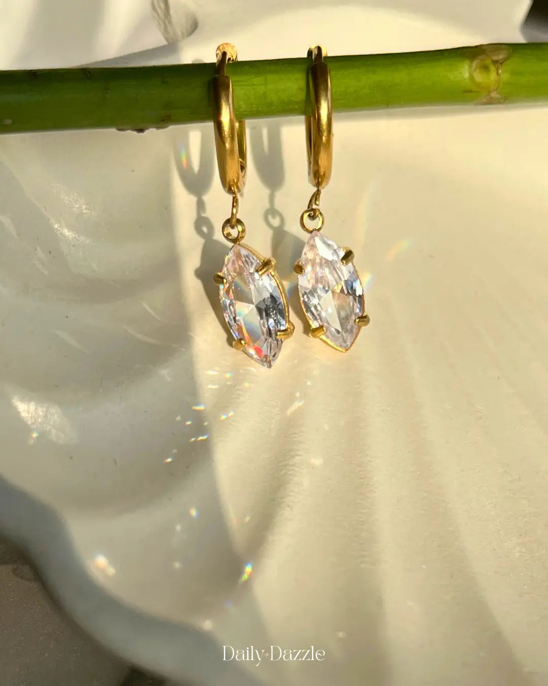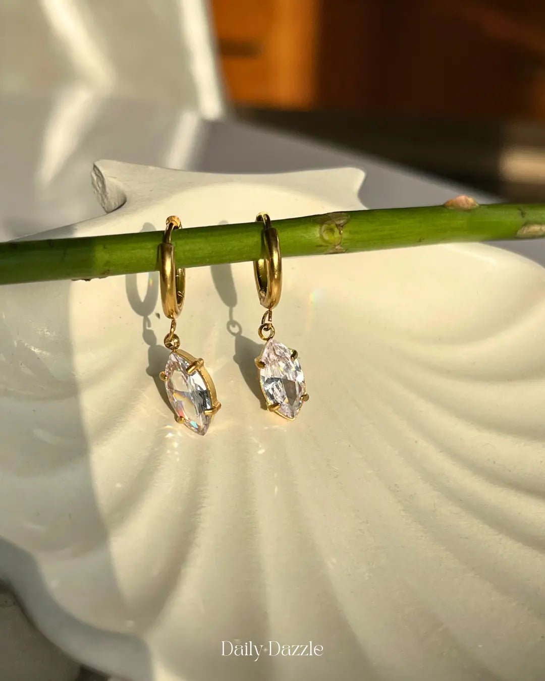 Catch the light—and compliments—with our Celeste Marquise Drop Hoops. Featuring a dazzling marquise-cut crystal suspended from sleek gold hoops, these earrings are your go-to for effortless elegance. Whether you're dressing up a date-night look or adding sparkle to a daytime outfit, these drops bring a celestial shimmer to every step.