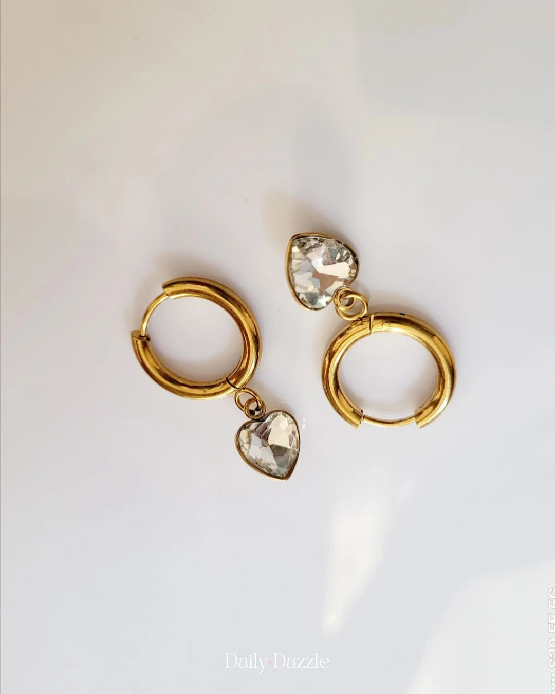Add effortless charm to your everyday look with the Drop Hoops — a perfect blend of simplicity and sparkle. These minimalist huggie-style hoops feature a dazzling round-cut cubic zirconia charm that gently dangles, catching the light with every move. Crafted with radiant 18K gold plating and an anti-tarnish finish, they're made to keep their shine day after day.