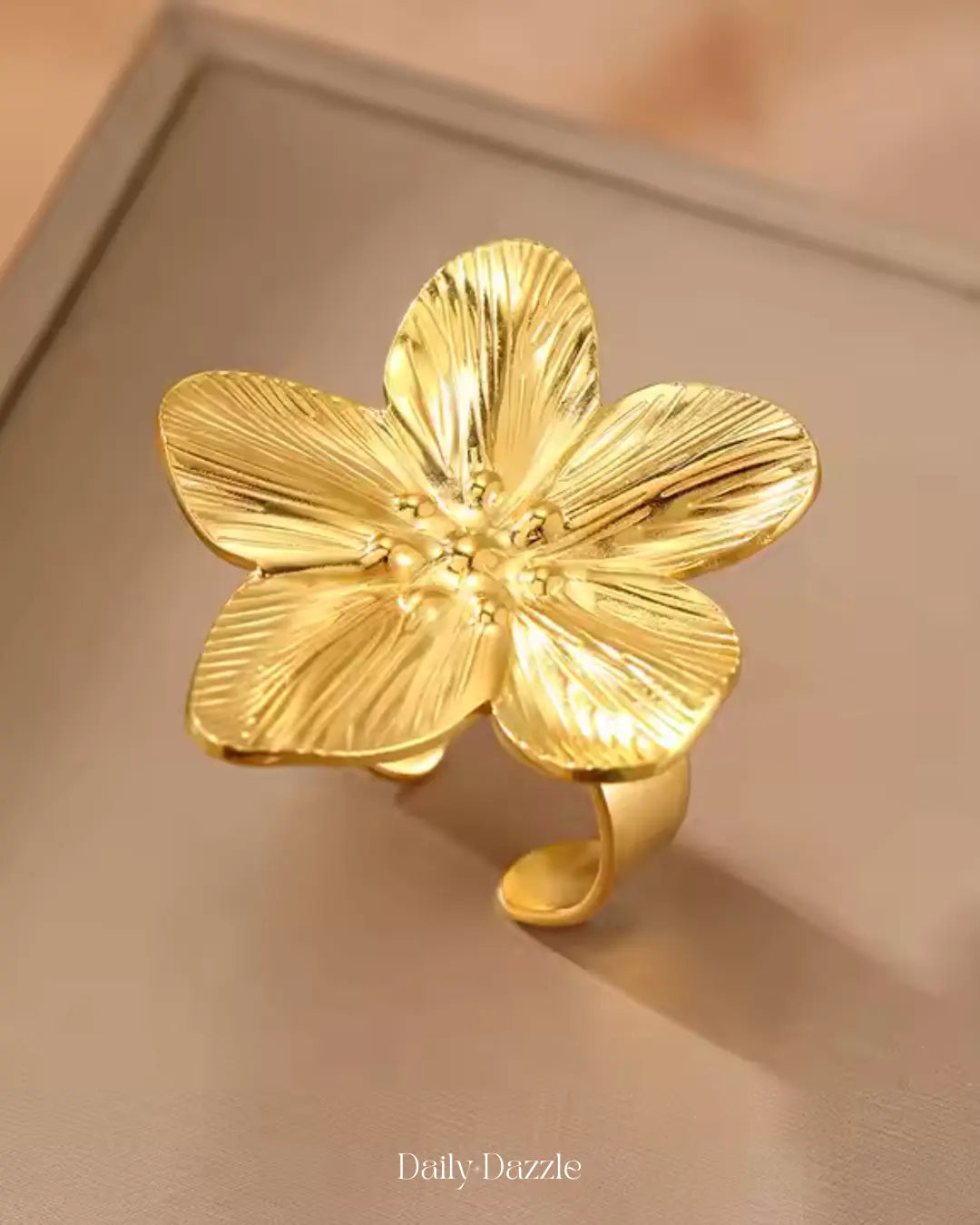 Crafted with anti-tarnish technology and finished in radiant 18K gold plating, this ring is designed to stand out season after season. The adjustable band ensures a perfect fit for any finger—comfort meets elegance without compromise.