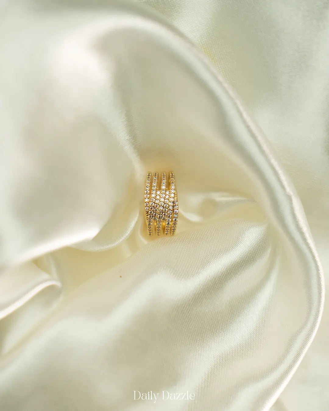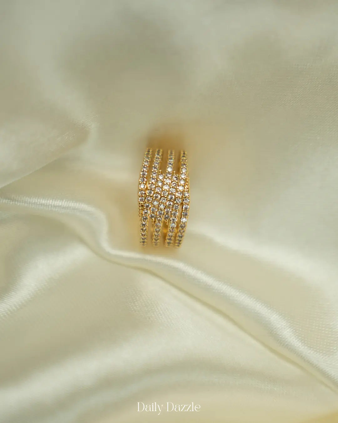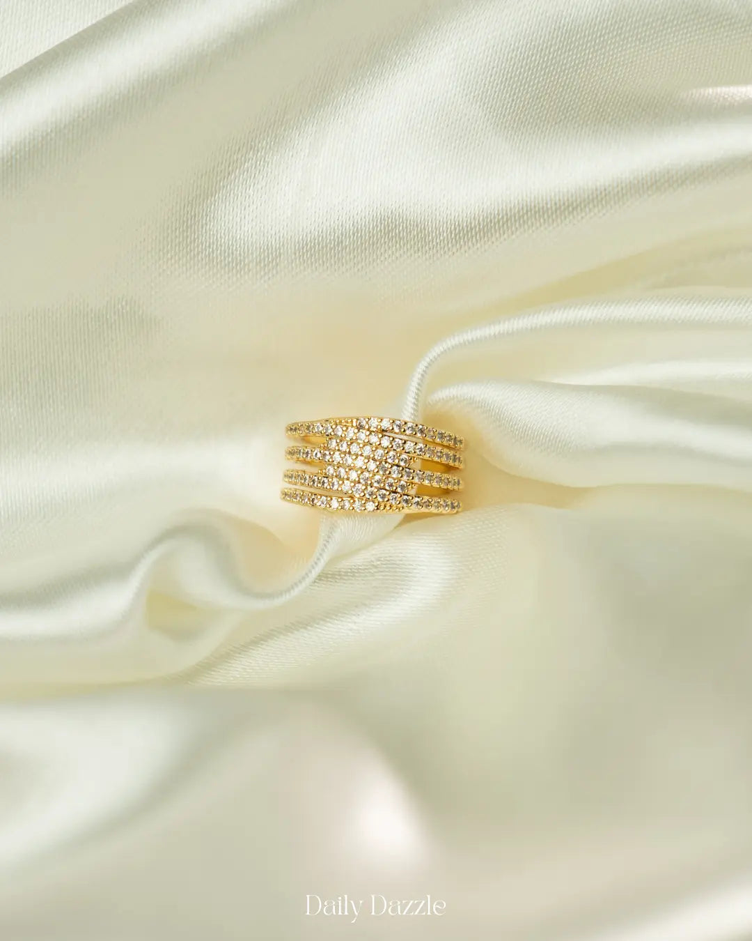 Light up every moment with our Radiance Ring. Designed with rows of sparkling stones, this adjustable beauty effortlessly adds elegance and shine to any look. Crafted with 18K gold plating and protected by an anti-tarnish finish, it's made to stay as brilliant as you are, day after day.