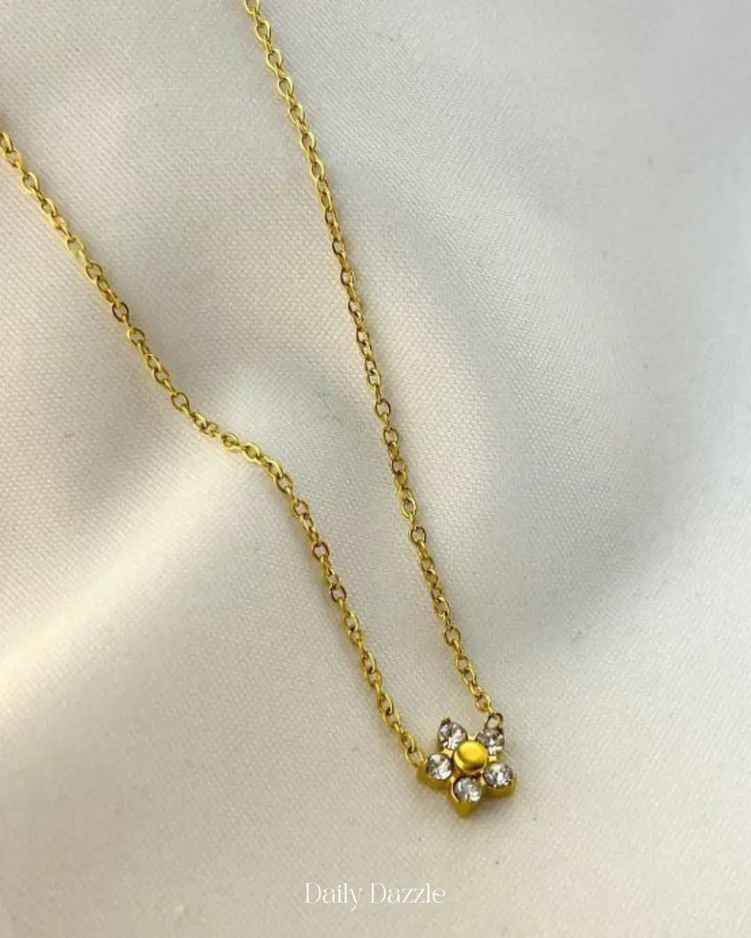 Delicate and timeless, the Daisy Necklace brings a playful yet polished charm to your everyday style. Featuring a petite daisy pendant with sparkling crystal petals and a golden center, this piece is a subtle nod to nature’s elegance.