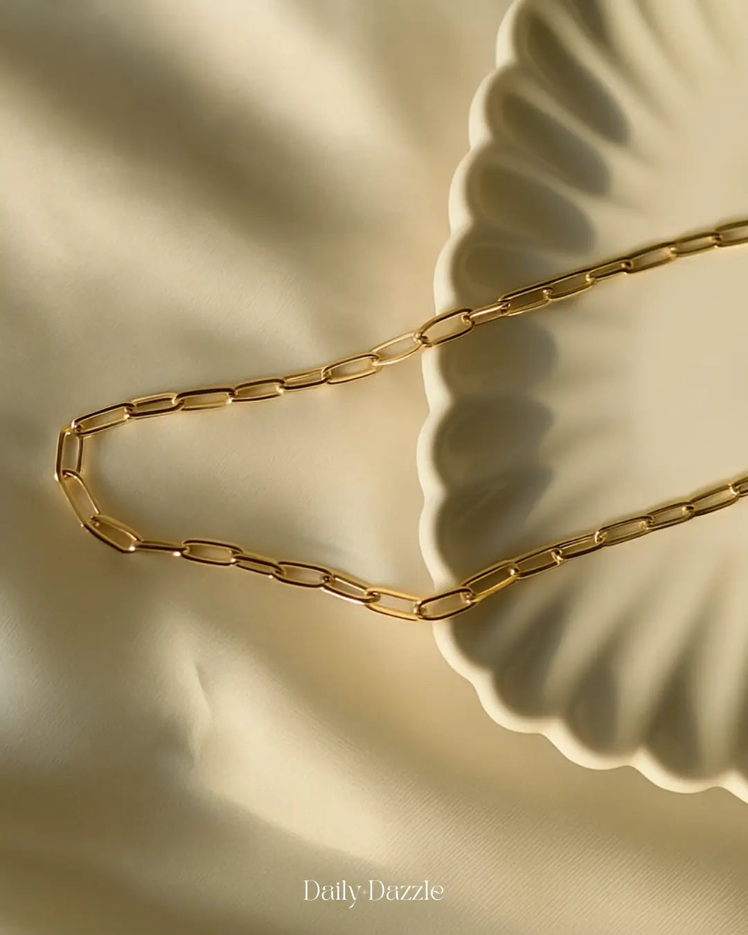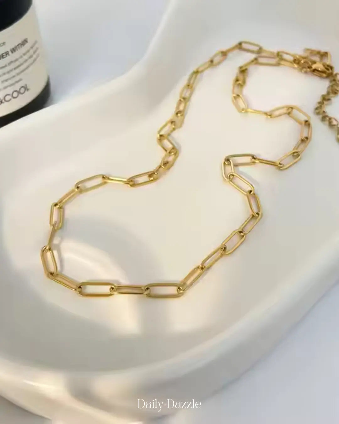 Meet your new go-to piece: a sleek, minimalist chain designed for effortless style. Crafted with 18K gold plating and our signature anti-tarnish finish, this classic chain shines whether worn solo or layered with your favorite necklaces.