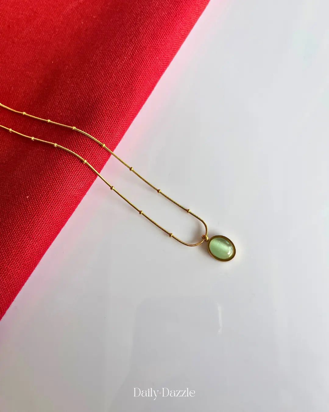 Subtle, elegant, and effortlessly fresh — the Sage Necklace is your new everyday go-to. Featuring a soft green oval stone set in a smooth gold bezel, this necklace brings a calm and refined charm to any look. The delicate beaded chain adds just the right touch of texture and shimmer.