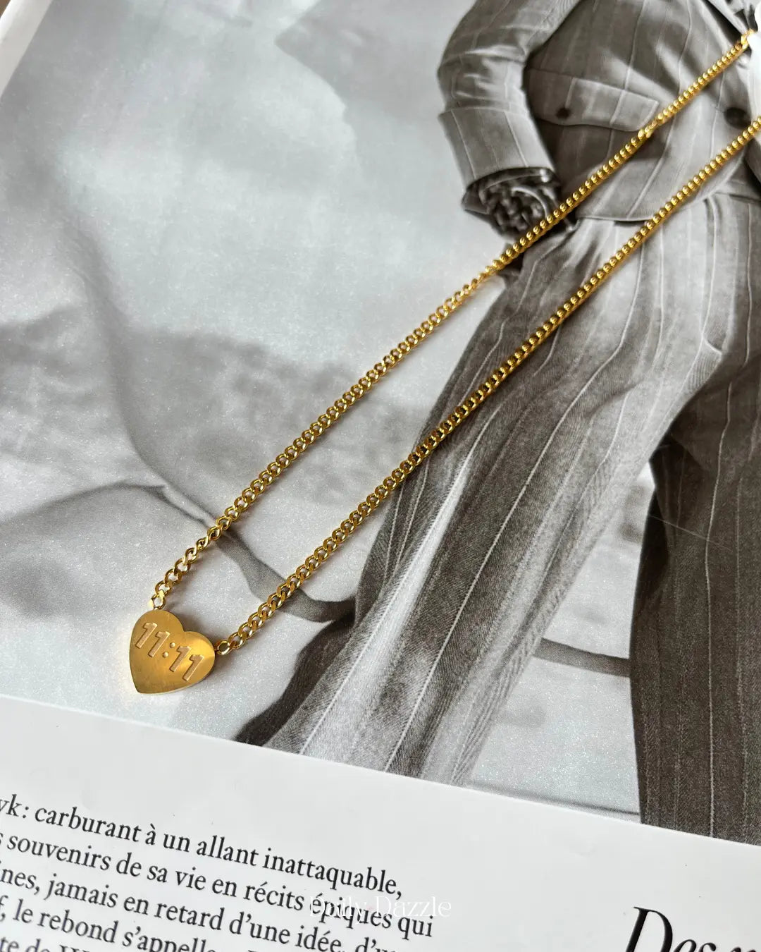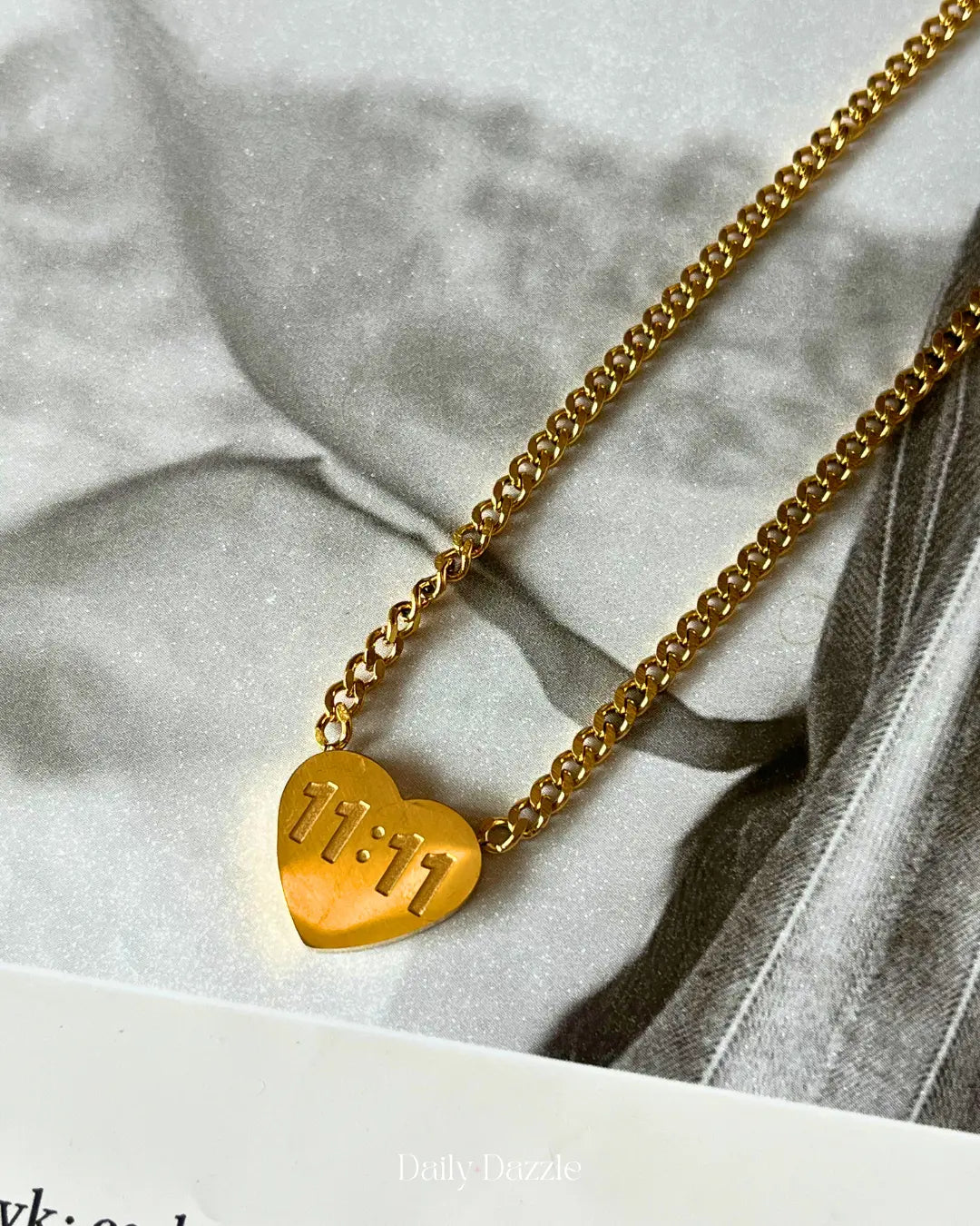 Make a wish and wear it close with our 11:11 Wish Necklace—a bold heart-shaped pendant engraved with the iconic "11:11" angel number. Symbolizing alignment, manifestation, and intuition, this piece is a daily reminder to trust your journey and believe in your dreams.