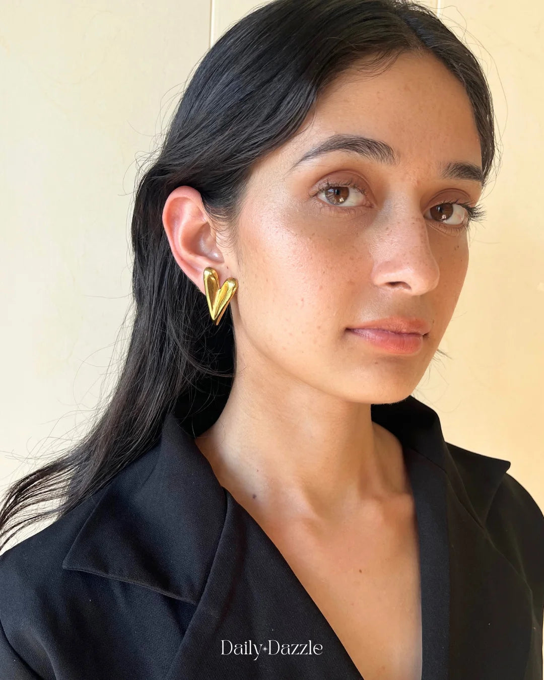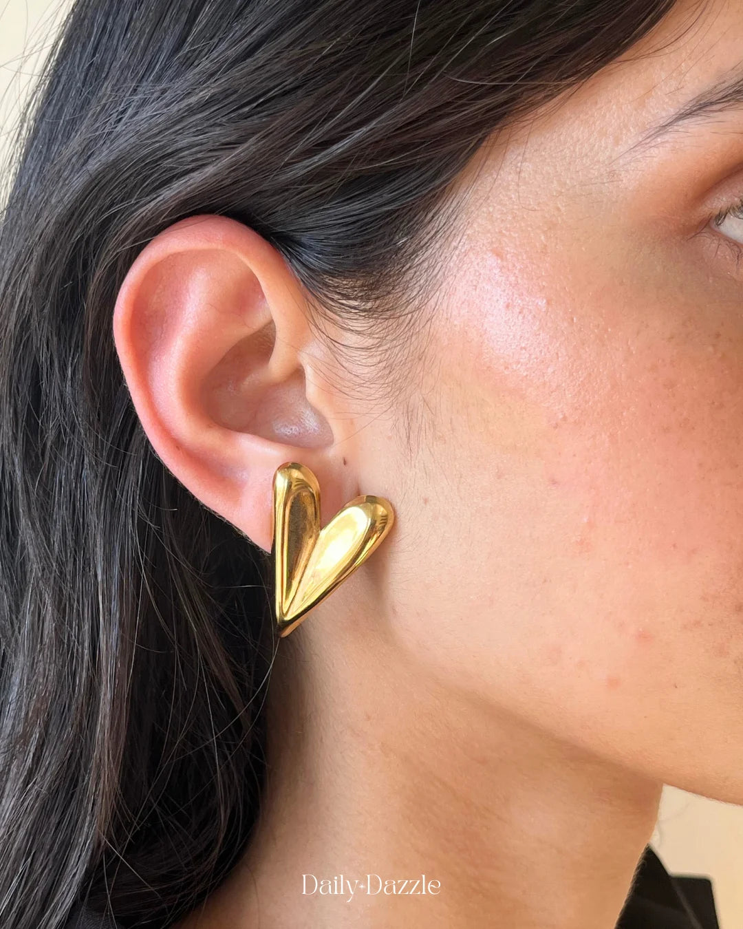 Make hearts race with these striking gold-plated heart earrings, crafted to add instant glamour to your look. Featuring a high-shine finish and a contemporary asymmetrical design, these earrings bring together elegance and confidence in one statement piece.