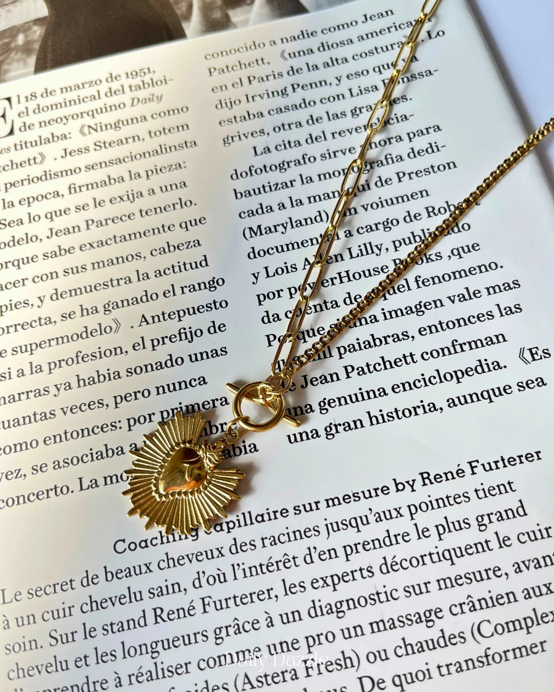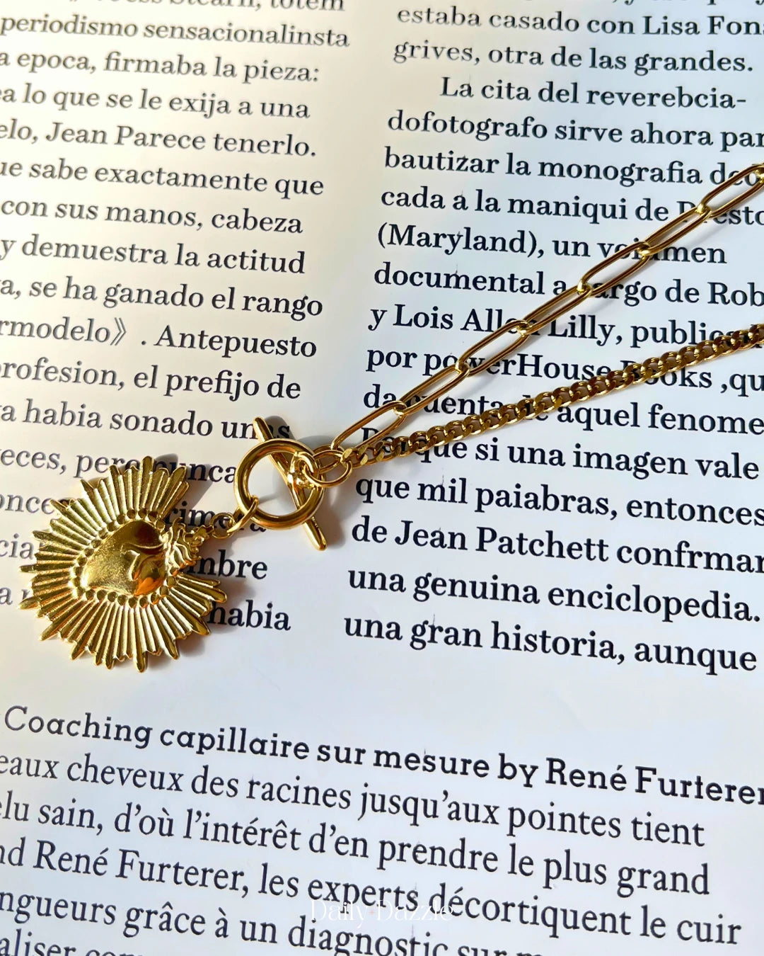 Channel bold elegance with the Ember Necklace, a statement piece that radiates confidence and inner strength. The intricately detailed lion motif, framed by sunburst rays, makes this 18K gold plated pendant a showstopper — perfect for the fearless and the fierce. Finished with a secure toggle clasp and crafted to be both waterproof and anti-tarnish, this piece roars with timeless beauty.