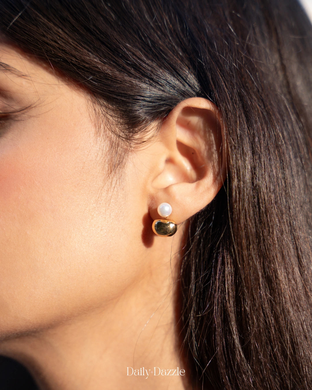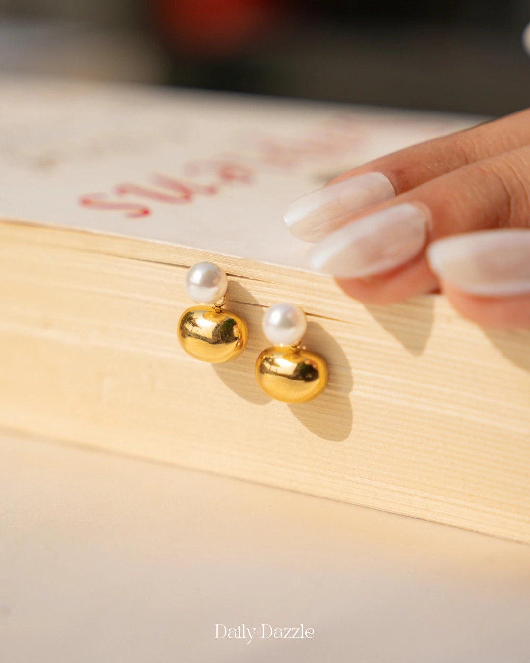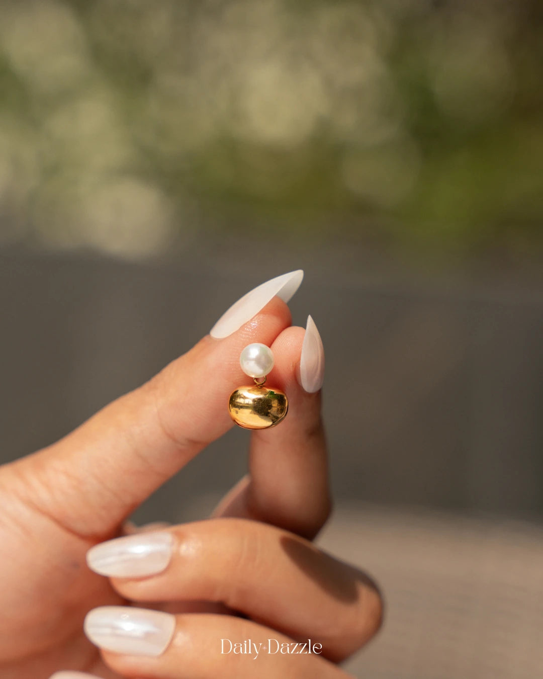 The lustrous pearl sits atop a polished gold pebble, creating a minimal yet striking contrast that exudes sophistication. Whether you're heading to the office or a dinner date, these earrings are the perfect finishing touch.
