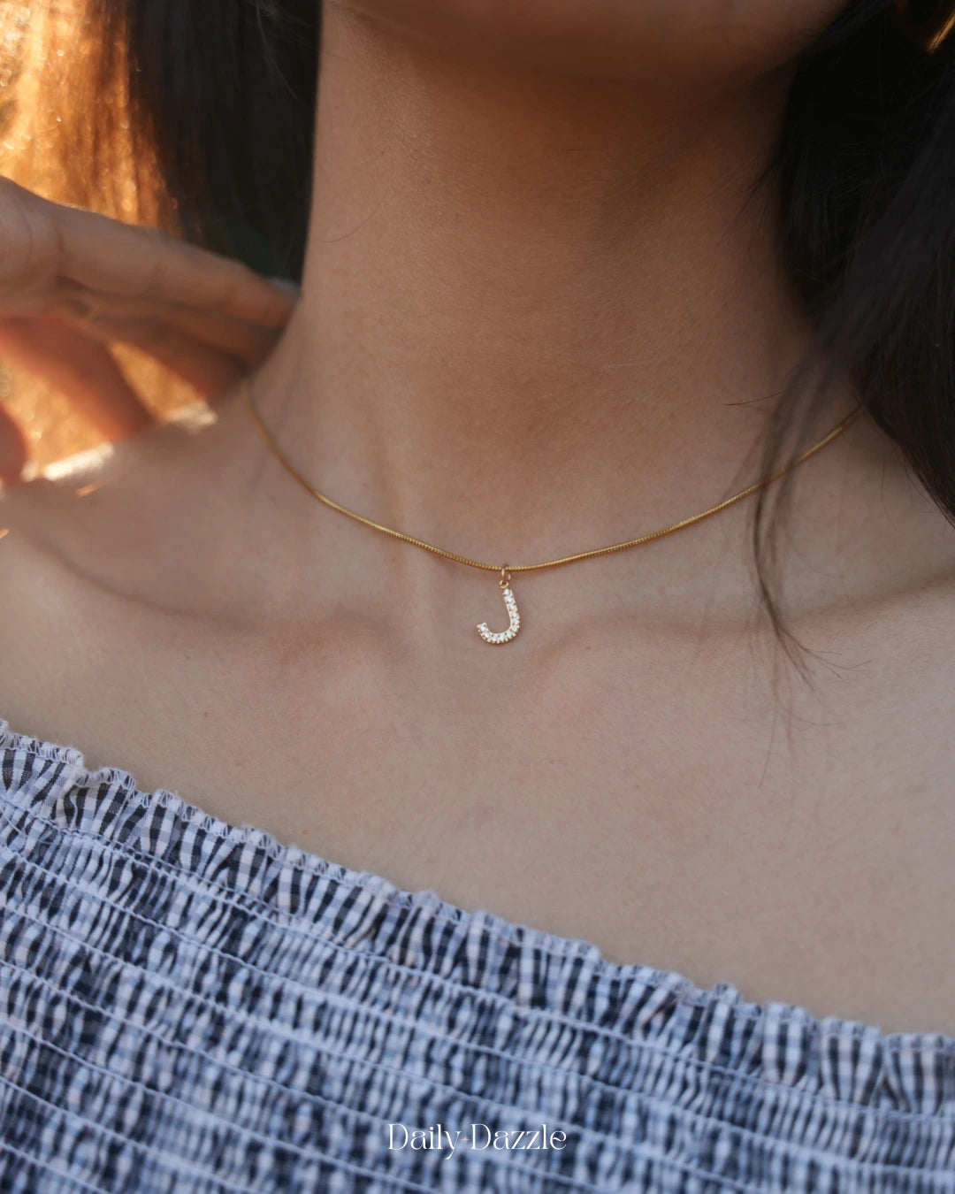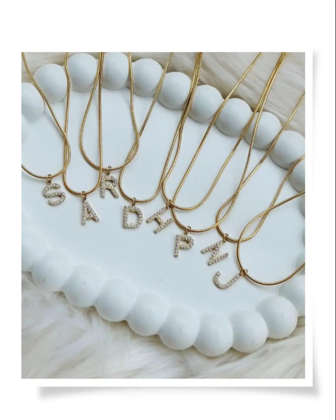 Designed for those who love a meaningful, elegant touch, each necklace features a sparkling letter pendant encrusted with dazzling stones, set on a sleek 18K gold-plated snake chain.