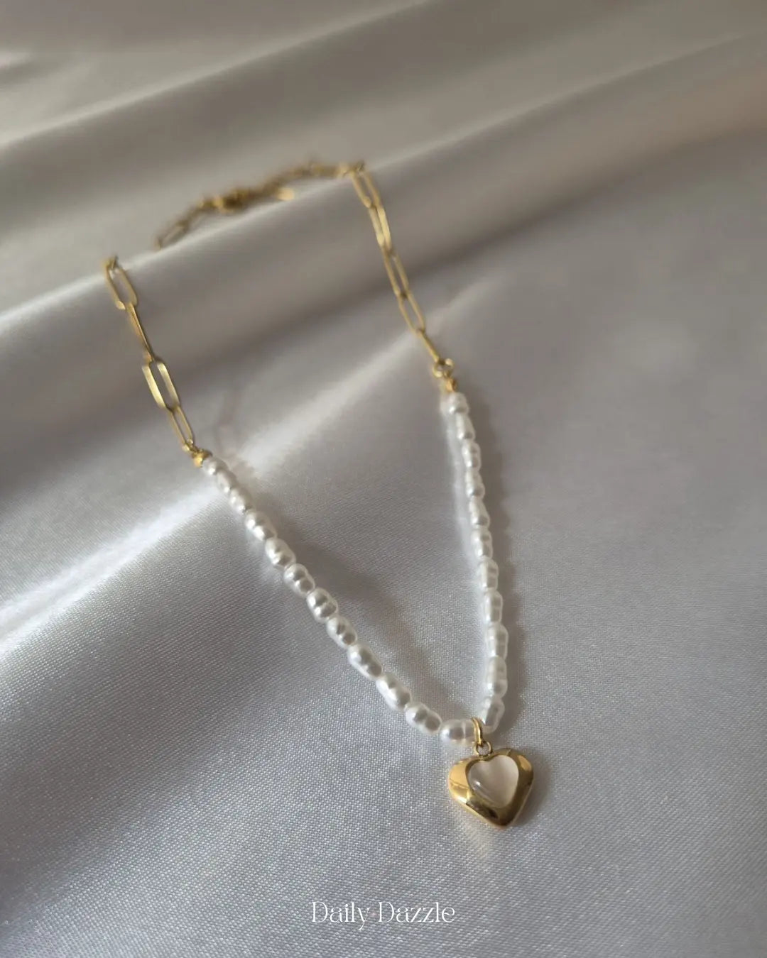 Romantic, chic, and timeless — the Soft Charm Necklace is designed to add a touch of elegance to every look. Featuring a delicate strand of pearls paired with a dainty 18K gold-plated heart pendant, this piece perfectly balances classic beauty with modern style.